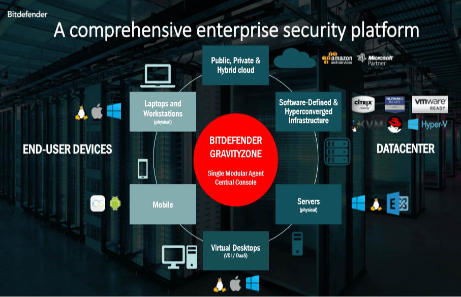 Ya, karena Bitdefender memberikan solusi lengkap dari mulai Software-Defined Data Center (SDDC), virtual/physical server/desktop, mobile, mail server, sampai jaringan.